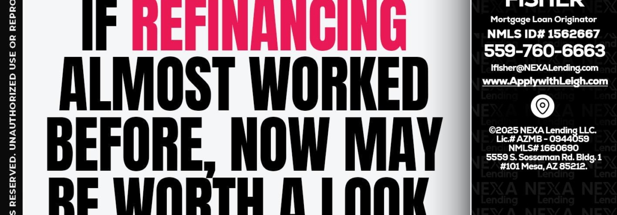 Hi, my name is Leigh Fisher. I’m a Loan Officer with NEXA Lending LLC., offering personalized mortgage solutions, fast customized quotes, great rates and service with integrity.